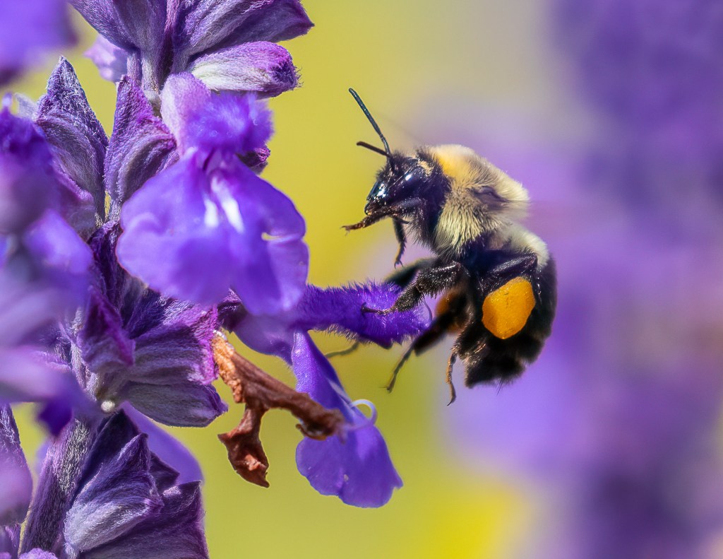 Linda: Bumblebee Visiting Salvia – Yellow Ribbon Florida Camera Club Council 2019 3rd Triannual Print Competition